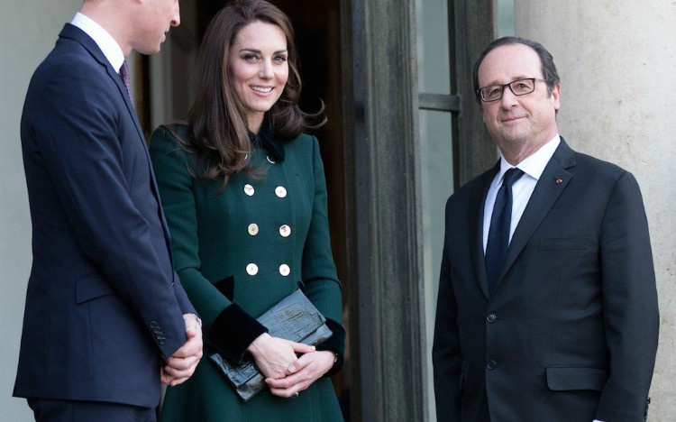 W piątek 17 marca, w Dniu Świętego Patryka, księżna Cambridge wraz z mężem, wzięła udział w spotkaniu z Gwardią Irlandzką. Kilka godzin później książęca para przyleciała do Paryża, gdzie rozmawiała z prezydentem Francji Francoisem Hollandem. Przy obu okazjach strój Kate uzupełniała kopertówka z poznańskiej manufaktury Etui Bags.
