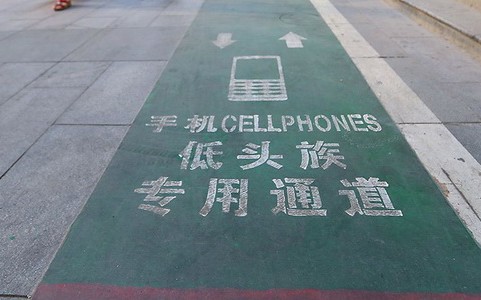 Dom towarowy w mieście Xi’an w północno-zachodnich Chinach wyznaczył specjalną ścieżkę dla pieszych chodzących ze wzrokiem utkwionym w telefonie komórkowym, by poradzić sobie z tym powszechnym zagrożeniem dla bezpieczeństwa ruchu.