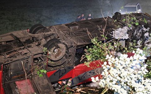 Wypadek w Leszczawie. Autokar stoczył się ze skarpy, trzy osoby nie żyją