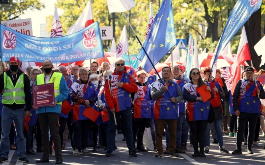 Через рішення санітарно-епідемічної служби суботня акція протесту була організована в кількох місцях. Голова Спілки вчителів Польщі Славомір Броняж пояснив, що акція була організована на знак протесту проти політики міністра Пшемислава Чарнека.