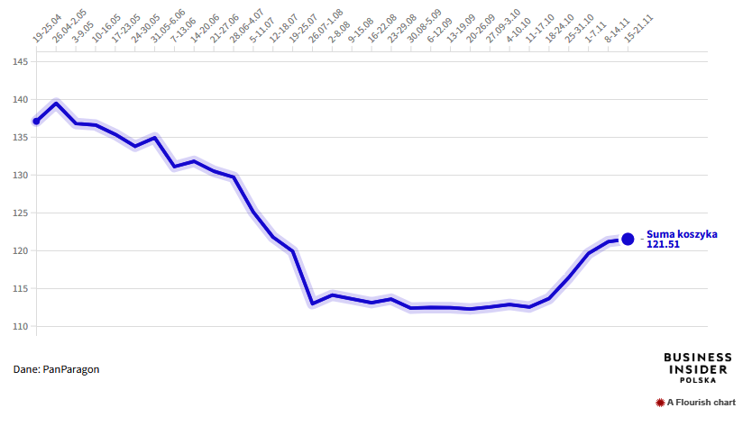 Підвищення цін не можна назвати різким – тижнем раніше споживчий кошик подорожчав на 1,3 %, але за покупки полякам доводиться платити дедалі більше. І це особливо відчутно в передріздвяний період, коли списки покупок стають набагато довшими, ніж зазвичай. Минулого тижня вартість польського споживчого кошика, вперше від літа, перетнула позначку у 120 злотих. Зрозуміло, що ціни не мають наміру зупинятися.