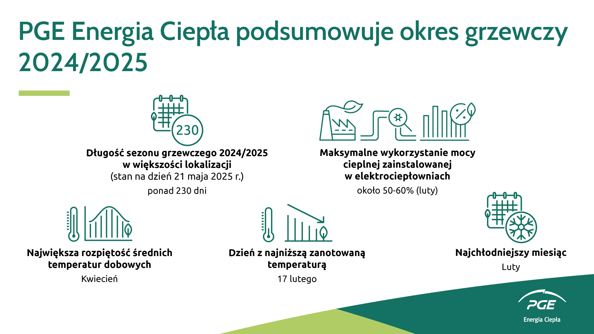 Цей опалювальний сезон є одним із найтриваліших за останні роки. У багатьох містах, де електро- і теплоцентралі компанії PGE Energia Ciepła виробляють тепло, він досі триває, оскільки цьогорічний травень, що характеризується надзвичайно низькими температурами, є найхолоднішим за понад 30 років.