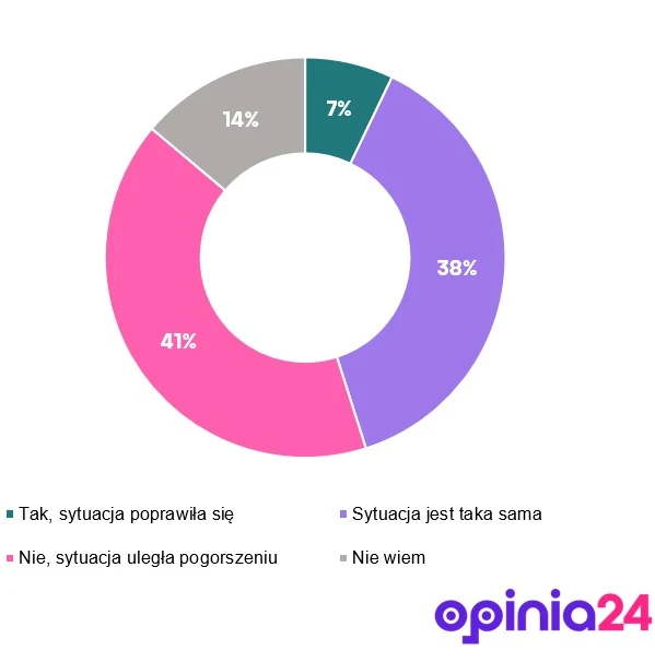 Понад 2/5 респондентів відповіли, що становище пацієнтів погіршилося. Таку відповідь вказав 41 % опитаних. Протилежної думки – менш як 1/10 поляків. Покращення ситуації пацієнтів помітили лише 7 % учасників опитування. Жодних змін не помітили 38 % респондентів. Решта (14 %) не мали чіткої думки з цього приводу.