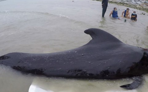 Не допомогли ані буйки, якими кита намагалися утримати на поверхні, ані парасолі, якими його затуляли від сонця. Кит загинув.